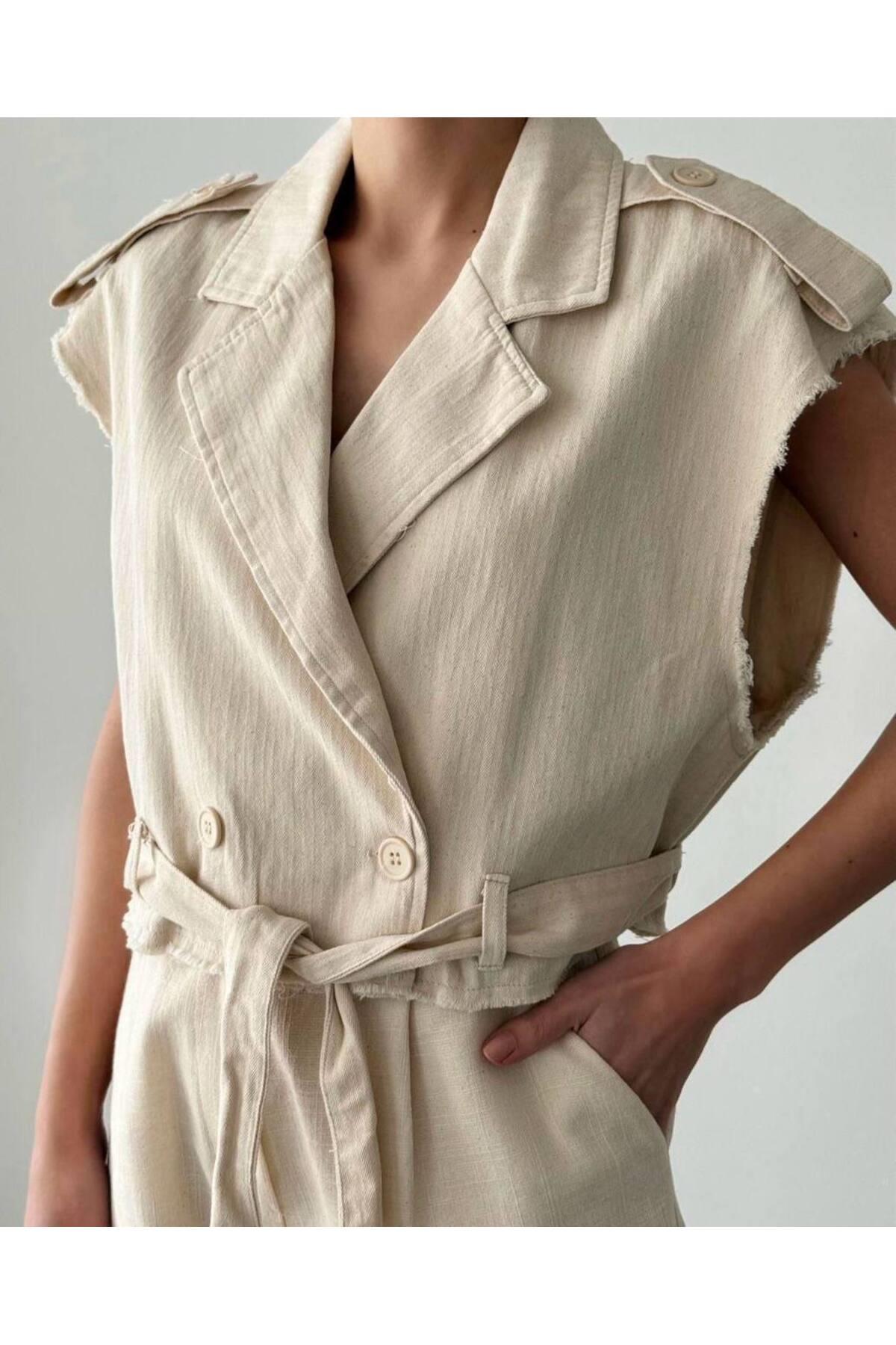 %100 Pamuk Ekru Kısa Kadın Ceket