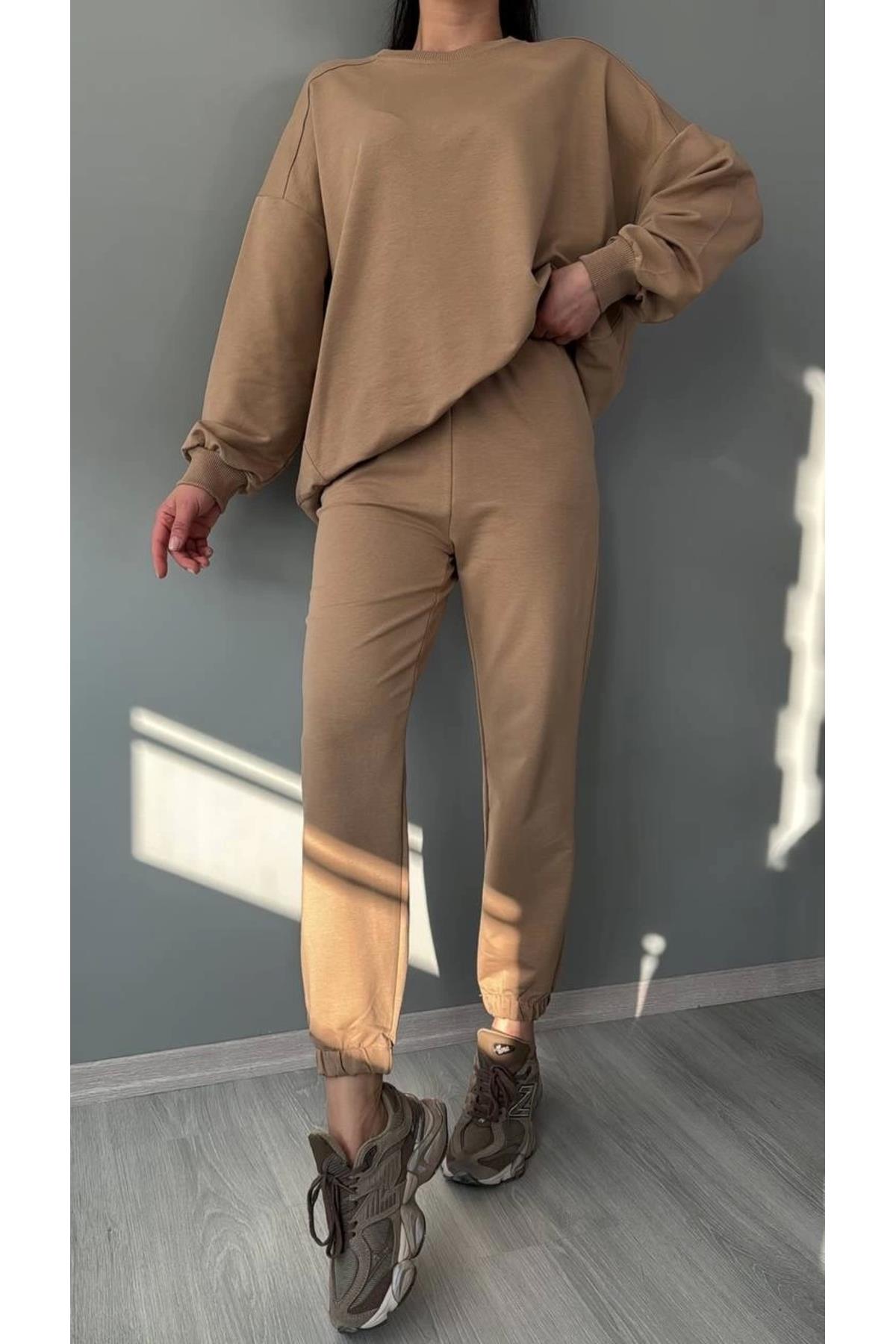 - Zarif camel rengiyle dikkat çeken bu eşofman takımı, günlük kullanım için idealdir.; - Çok renkli web color özelliği ile şıklığı ve rahatlığı bir arada sunar.; - Kolay bakım imkanı sağlayan yıkama talimatları sayesinde uzun süreli kullanım vaat eder.; - Normal bel tasarımı ile konforlu bir oturuş sağlar ve hareket özgürlüğü tanır.; - Regular boy kesimiyle her vücut tipine uyum sağlayarak rahat bir giyim deneyimi sunar.; - Kadın / kız yaş grubuna hitap eden bu takım, herkesin gardırobunda yerini almayı hak ediyor.; - Astarsız yapısıyla hafiflik ve nefes alabilirlik sunarken, astar ihtiyacını ortadan kaldırır.; - Yetişkinler için özel olarak tasarlanmış olup, geniş beden skalasıyla herkes için uygunluk gösterir.; - Sweatshirt ve eşofman altından oluşan alt-üst kombinasyonu ile tam bir uyum sergiler.; - Menşei Türkiye olan bu ürün, yerel üretim avantajlarıyla kaliteyi ön plana çıkartıyor.; - Bisiklet yakası sayesinde modern ve spor bir görünüm kazandırırken aynı zamanda rahatlık sunar.; - Sade ve düz deseniyle zamansız parçalardan biri haline gelir; farklı aksesuarlarla kolayca kişiselleştirilebilir.; - Regular kalıp ile vücudu saran ancak sıkmayan yapıda olup gün boyu konforlu hissetmenizi sağlar.; - Dokuma kumaş tipi dayanıklılığı arttırarak ürünün formunu korumasına yardımcı olurken yumuşak dokusuyla teninizde hoş bir his bırakır.; - L bedeni sayesinde standart bedene sahip kişiler için mükemmel uyumu yakalar; böylece rahatlıkla tercih edebilirsiniz.
