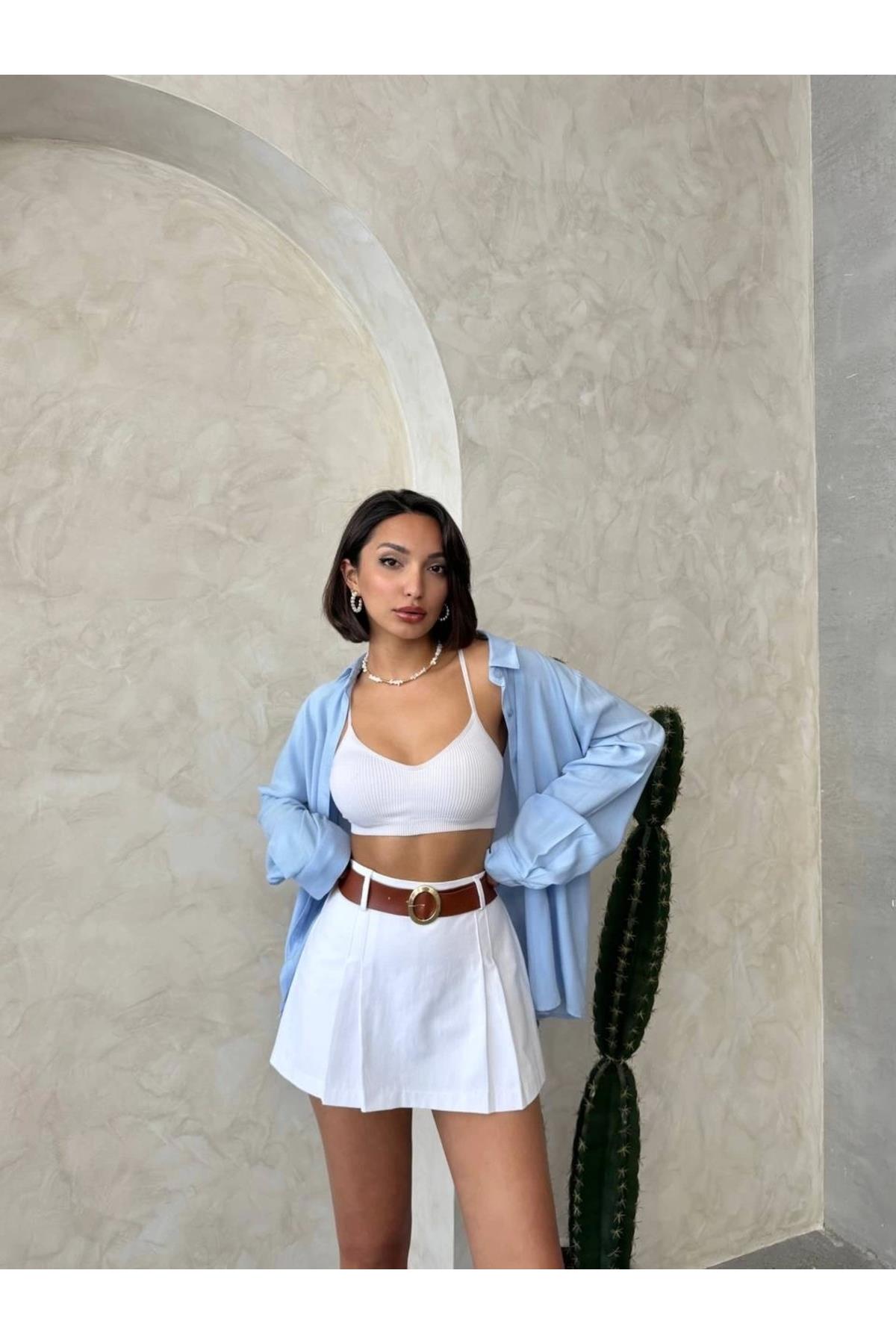 - Taş rengiyle şıklığı ve zarafeti bir arada sunan pileli şort etek, günlük kullanımda rahatlık sağlar.; - Çok renkli web kumaşı sayesinde farklı kombinlerde kolayca uyum sağlayarak stilinizi öne çıkarır.; - Astarsız yapısıyla hafif ve serin tutarken, kemer detayı belinizi vurgulayarak feminen bir siluet oluşturur.; - Pileli kalıbı ile hareket özgürlüğü sunar ve modern bir görünüm kazandırır.; - Dokuma gabardin kumaşı dayanıklılığı arttırırken, düz deseniyle sadelikten yana olanların tercihi olur.; - Mini boyu ile bacakları olduğundan daha uzun göstererek feminen çizgilere sahip olmanızı sağlar.; - Casual ortamlarda rahatlıkla tercih edebileceğiniz bu şort etek, günlük giyimde idealdir.; - Yüksek bel tasarımı sayesinde konforlu bir kullanım sunarken, cepsiz yapısı pratikliği artırır.; - Yetişkin yaş grubuna hitap eden bu parça, her gardrobun vazgeçilmez parçalarından biridir.; - Yıkama talimatlarına uygun bakım ile uzun süre ilk günkü gibi kalmasını sağlayabilirsiniz.; - XL bedeniyle geniş beden seçenekleri sunarak her vücut tipine uyum sağlar.